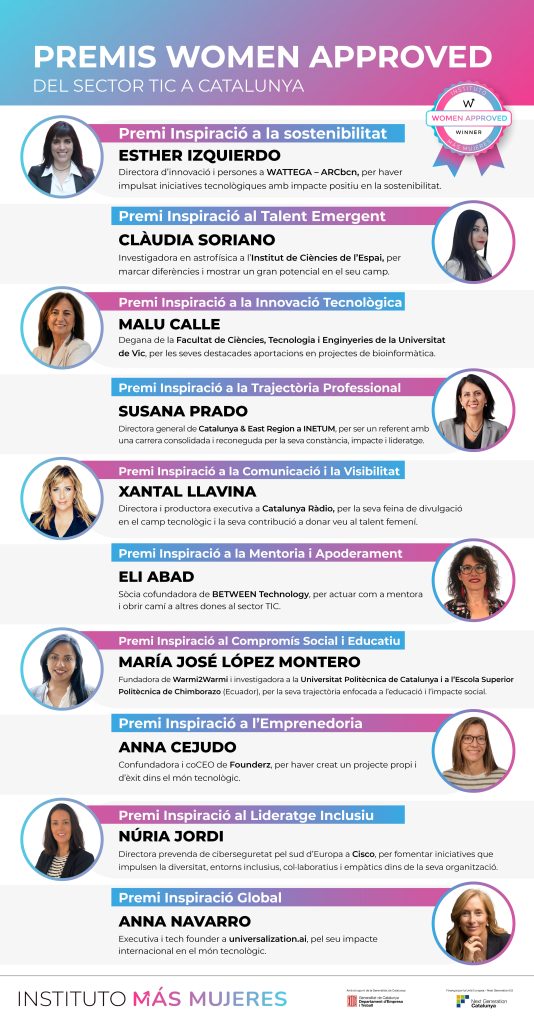 El 10 de septiembre celebramos uno de los momentos más especiales del año: la entrega de los Premios Inspiración Women Approved 2025, un reconocimiento que nace para dar visibilidad al talento femenino en el sector tecnológico catalán y homenajear a las mujeres que abren camino, transforman entornos y sirven de referente para las nuevas generaciones.